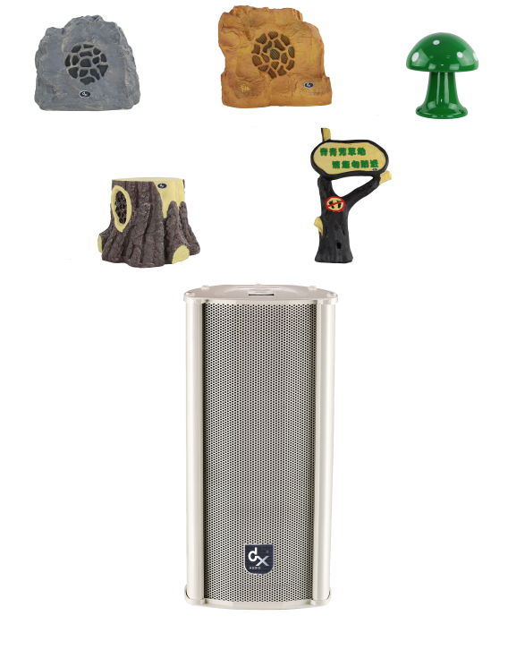 3、公園(yuán)仿真石頭(tóu)音箱、草地音箱、指路牌音箱、室外防水音柱。