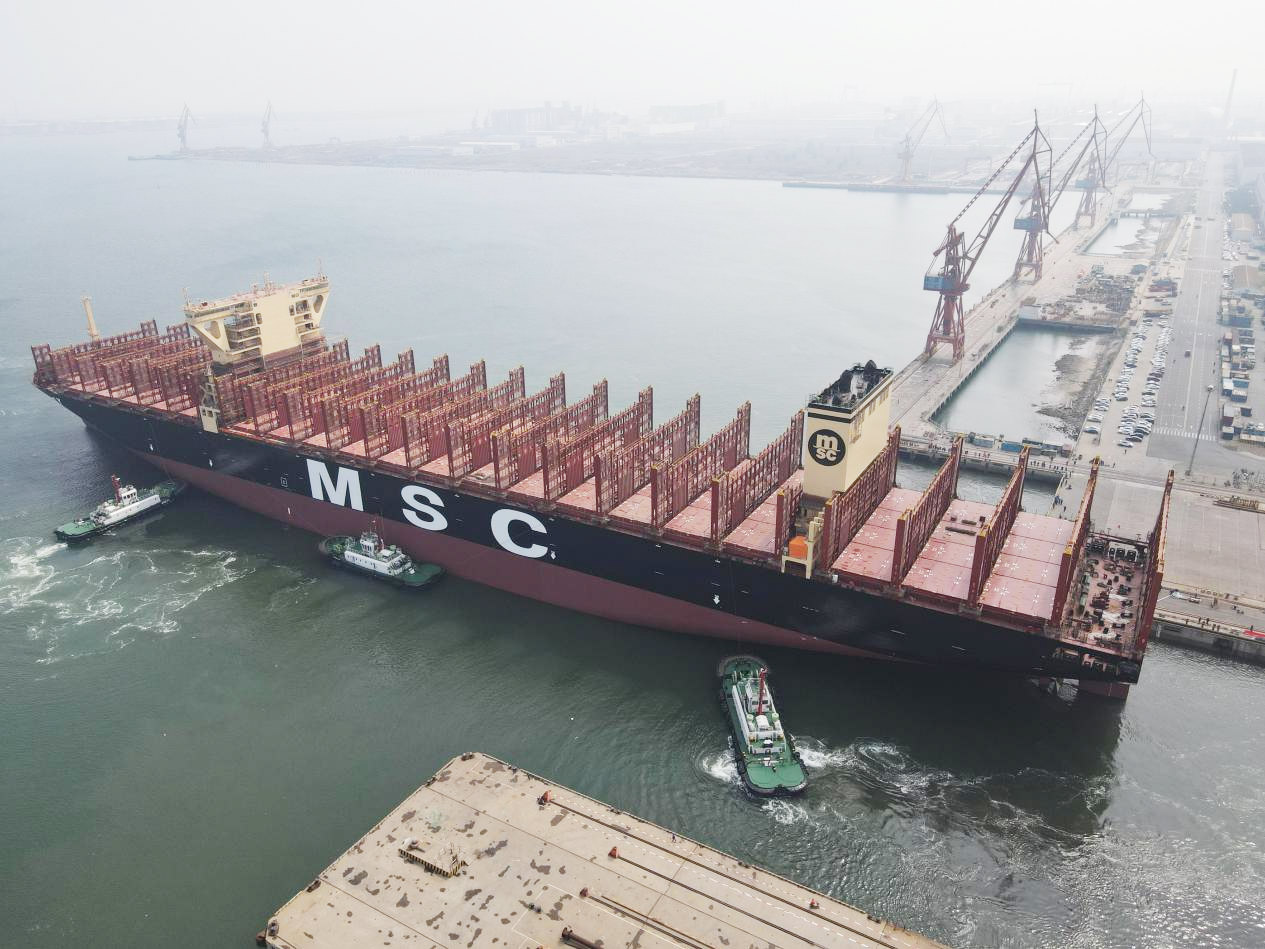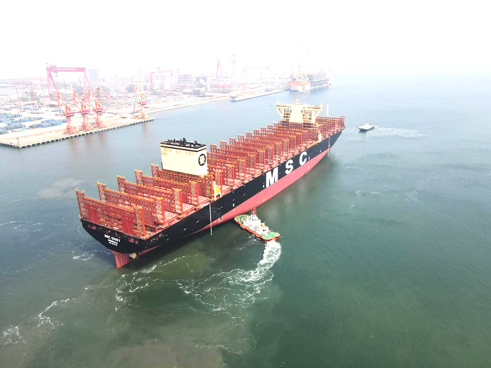 2023年4月25日,天津臨(lín)港船務股份有限公司大沽輪(lún)7和大沽輪(lún)9配合中船(天津)船舶制造有限公司爲MSC地中海航運建造的16000TEU集裝箱船首制船順利出塢。