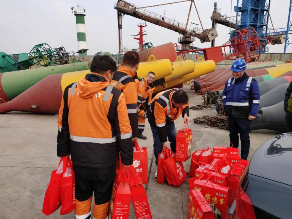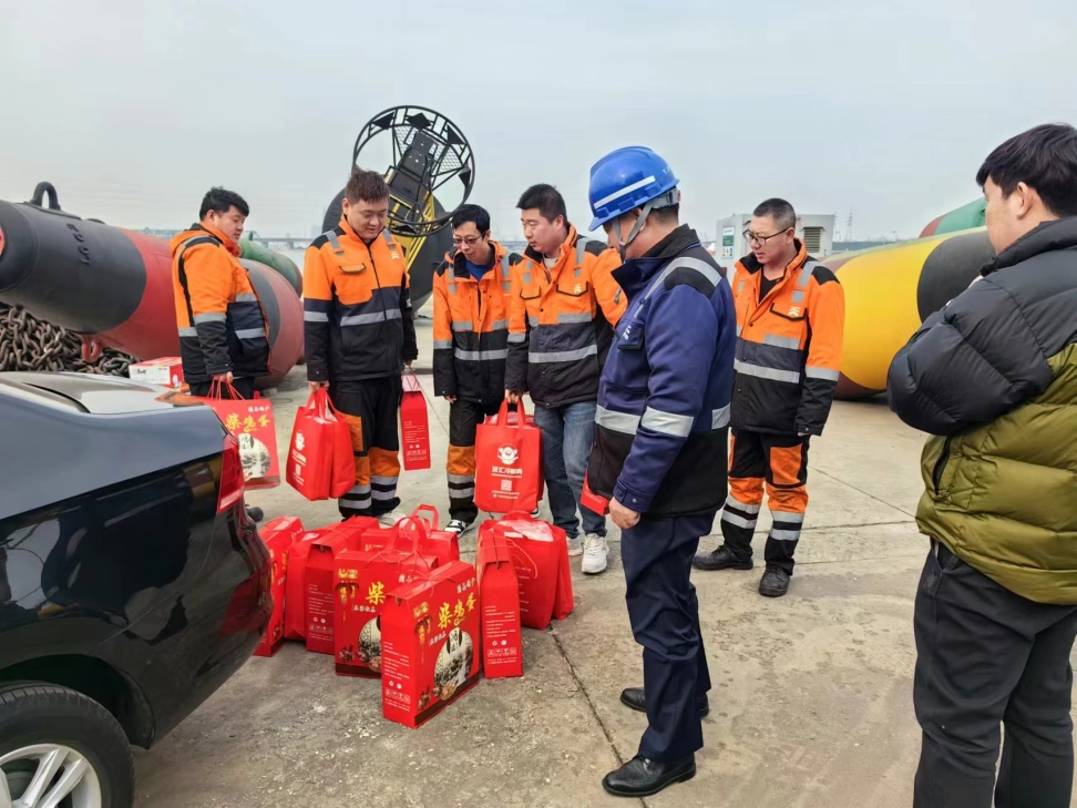 2024年2月2日下午,工會主席劉繼忠與公司工會幹部一同前往一線工作現場對奮戰在一線的船員進行春節慰問並(bìng)進行瞭(le)親切交流。劉主席首先對船員們在過去一年中的辛勤工作和無私奉獻表示由衷的敬意和感謝,在與一線船員深入交流中,詢問瞭(le)他們的工作情況、生活狀況以及對工會的期望和建議,随後,代表公司工會送上瞭(le)慰問品和節日祝福。