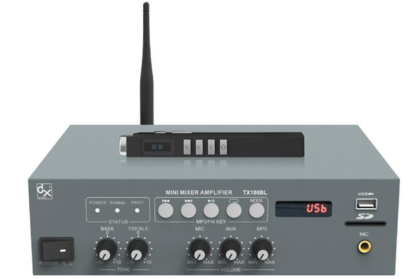 内置U盤/SD卡(MP3播放功能)/FM收音,1路話筒輸入,1路AUX輸入,1路線路輸出