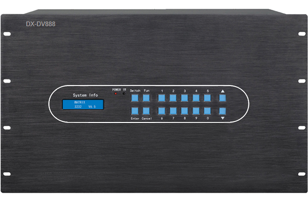 前面闆設有LCD液晶顯示屏,實時顯示輸入輸出狀态,對矩陣的任意操作都有相應燈态顯示