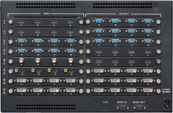 支持4/8/12/16/20/24/28/32/64/128路視頻信号輸入輸出切換