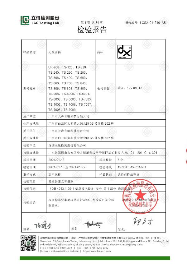 無線麥克風檢驗報告